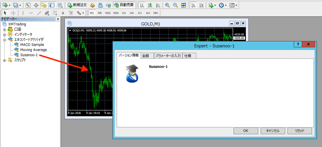 「Susanoo」をチャートにドラックアンドドロップしてください。