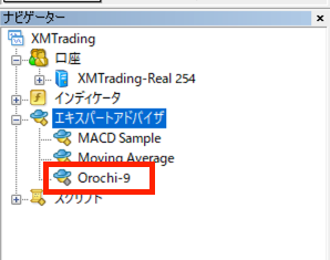 次に、エキスパートアドバイザの左にある+ボタンを押すと、先ほど入れたファイルが表示されます。
